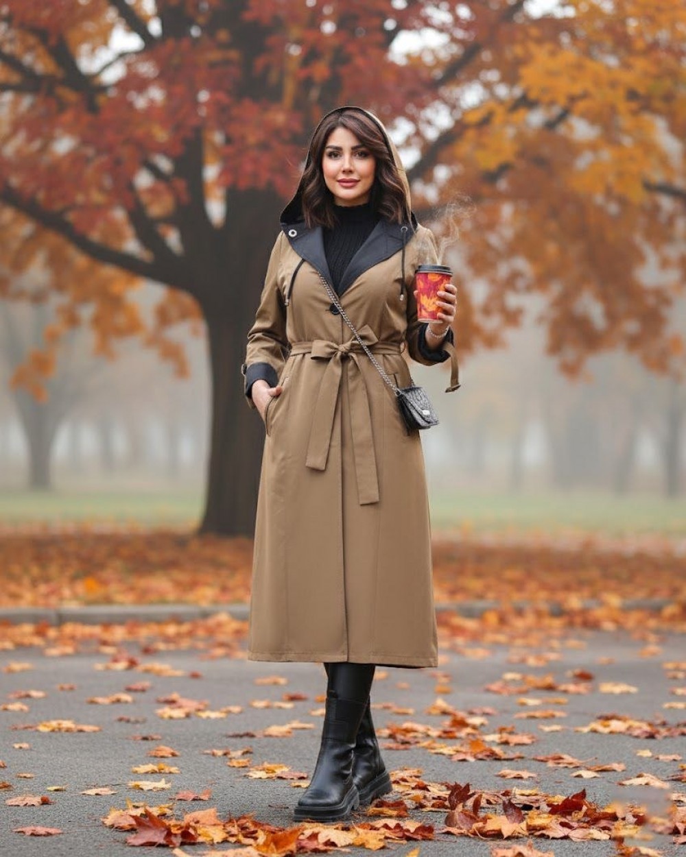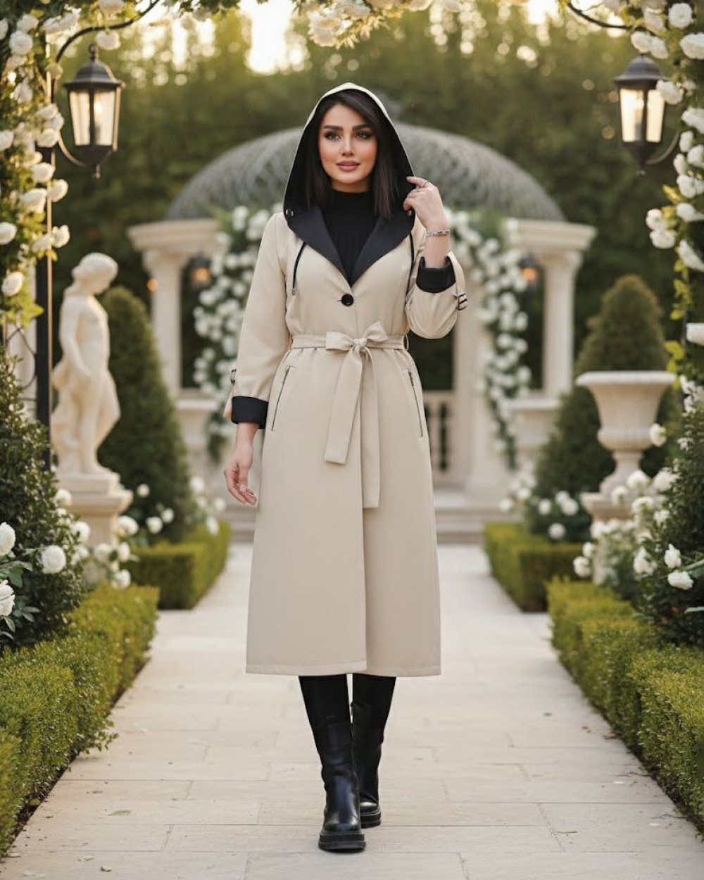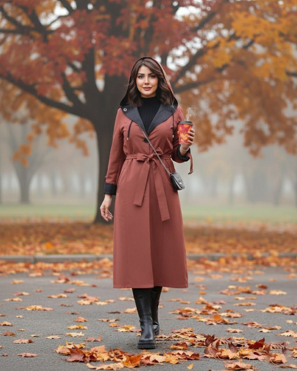 ✅بارونی بلند، پالتو پاییزه، پالتو بارونی