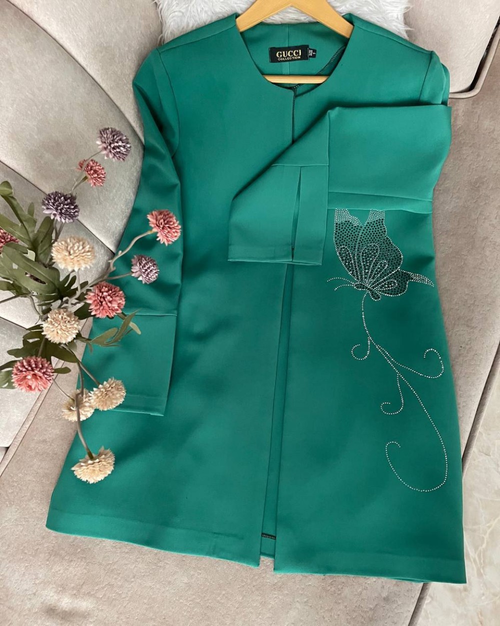 ✅پارچه کرپ مازراتی همراه نگین کاری