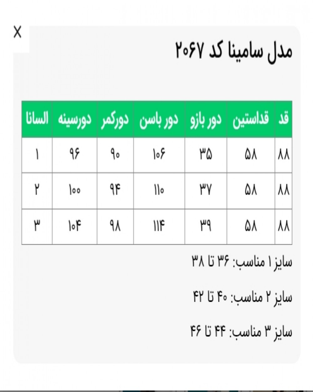✅دور سینه  سایز 3: 104