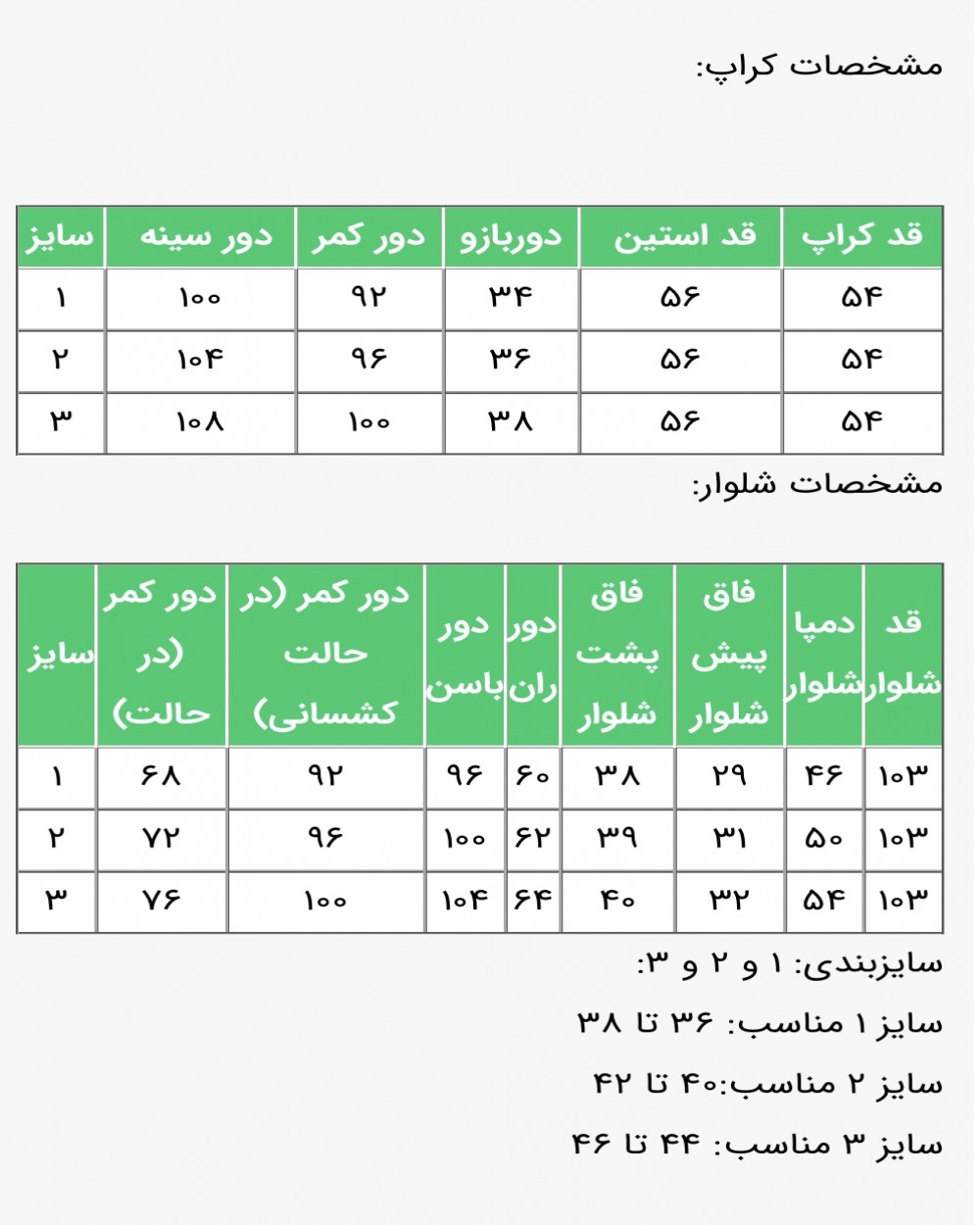 ✅سایزبندی: 1 و 2 و 3