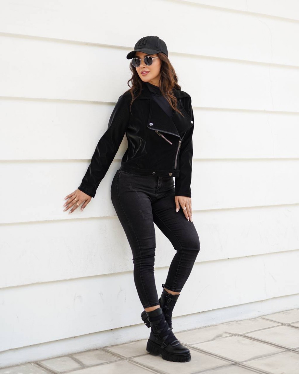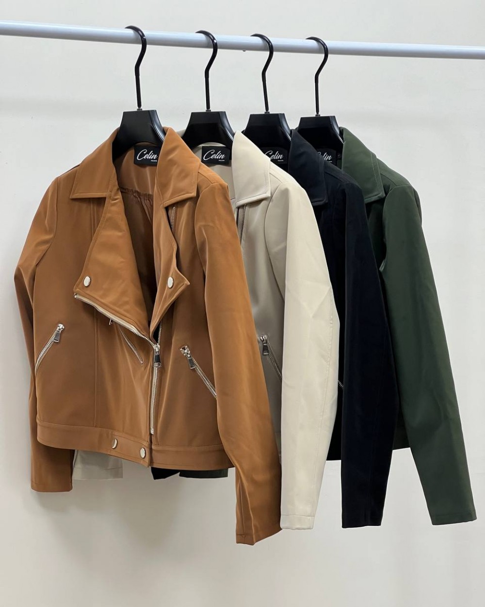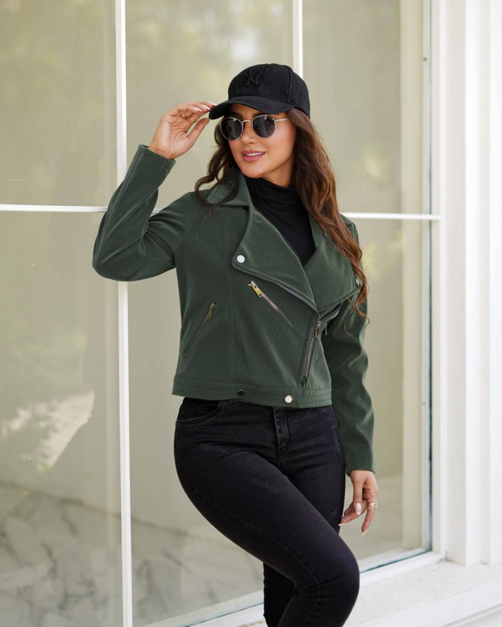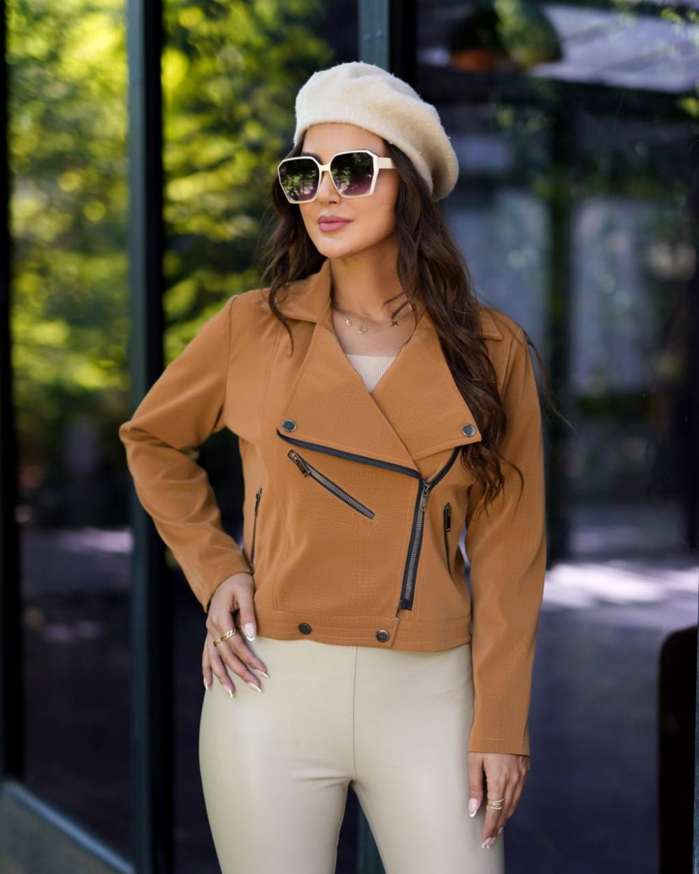 کاپشن چرم زنانه مدل کراپ زیپ کج کد 881 (ضمانت اصالت)