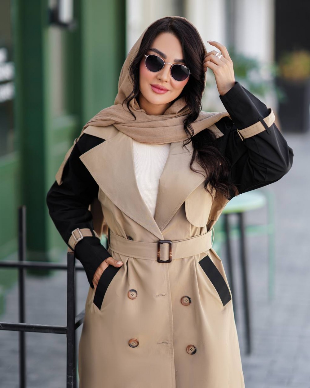 کت بارونی بلند ترکیبی زنانه مدل ترنج کد 256 (ضمانت اصالت)