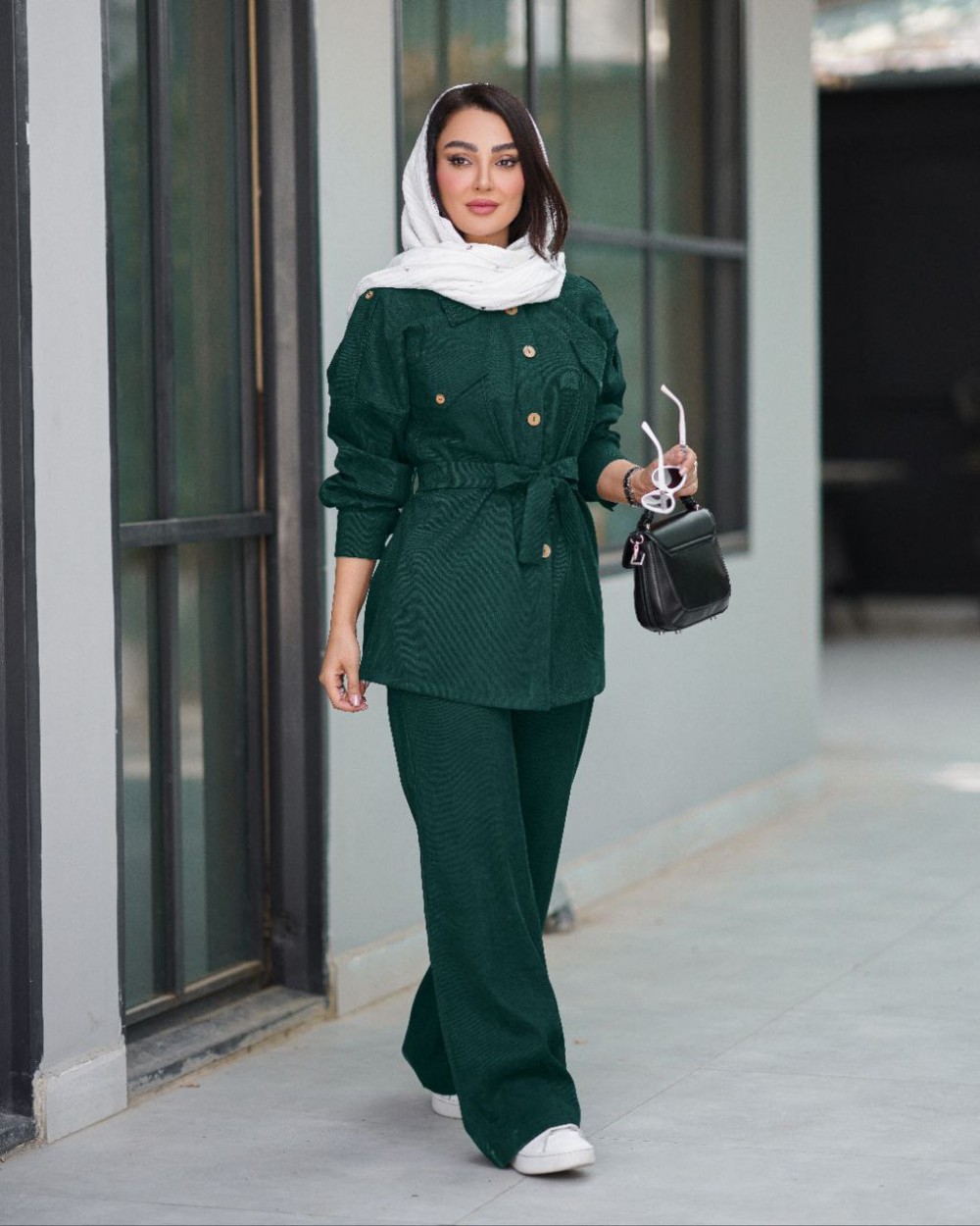 ست مانتو و شلوار مخمل زنانه مدل رسپینا کد 3094 (ضمانت اصالت)