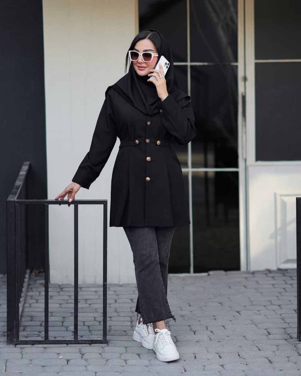 ✅️مانتو دخترونه، مانتو پاییزه، مانتو مشکی