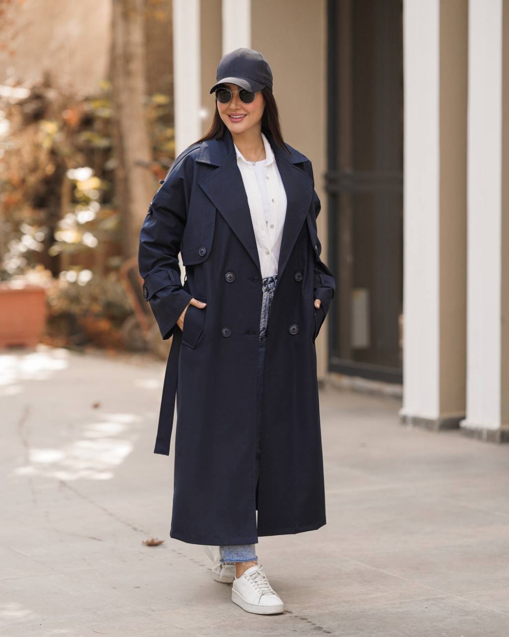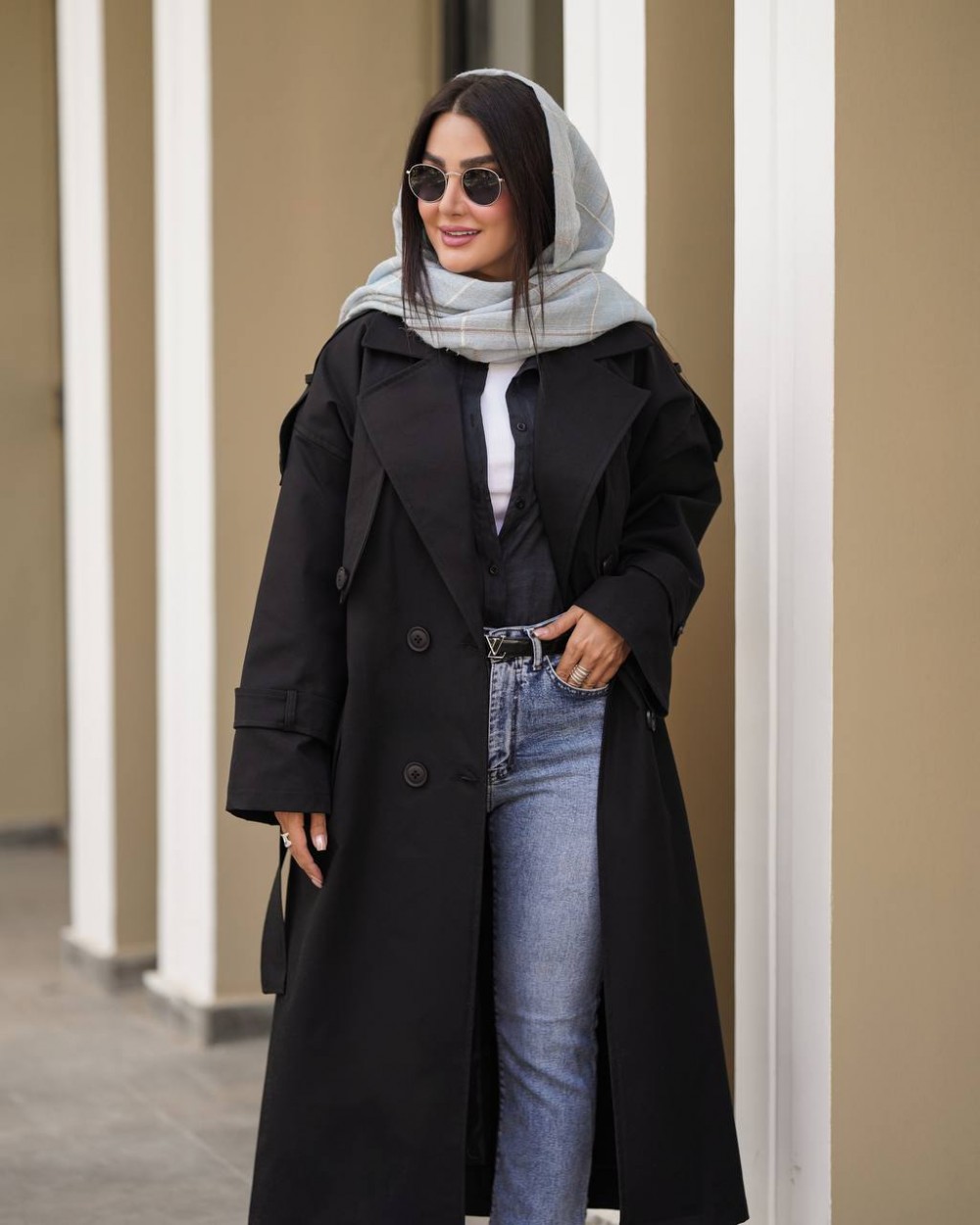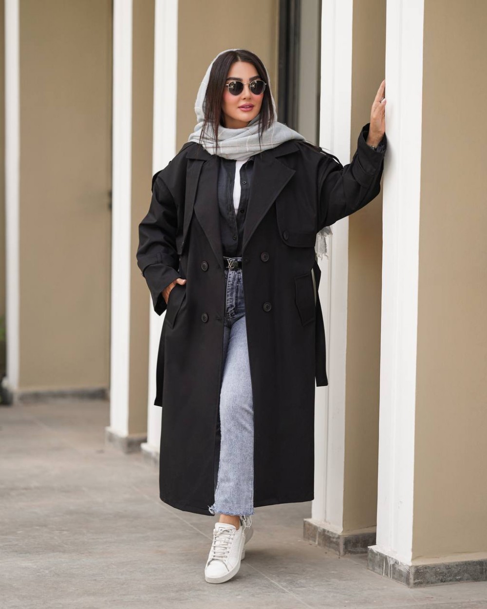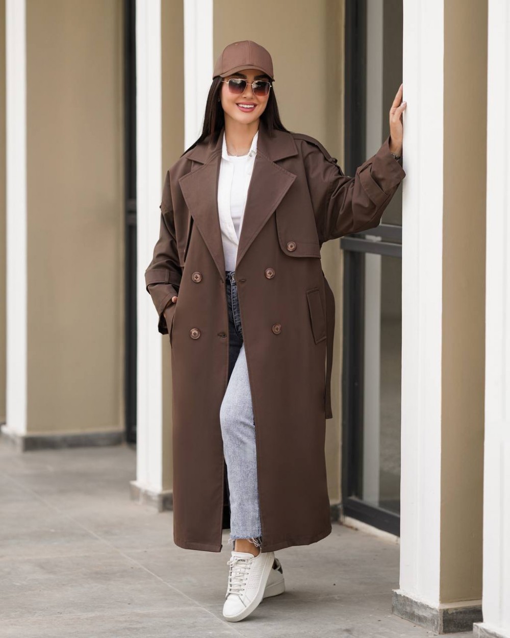 بارانی کتان زنانه مدل بلند دو شنل کد 5083 (ضمانت اصالت)