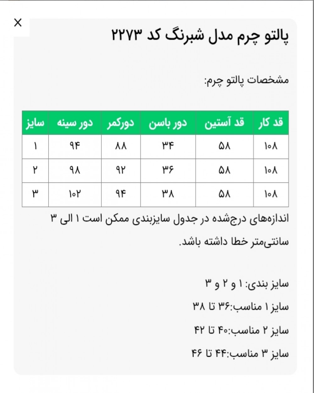 ✅️دور سینه سایز 3: 102