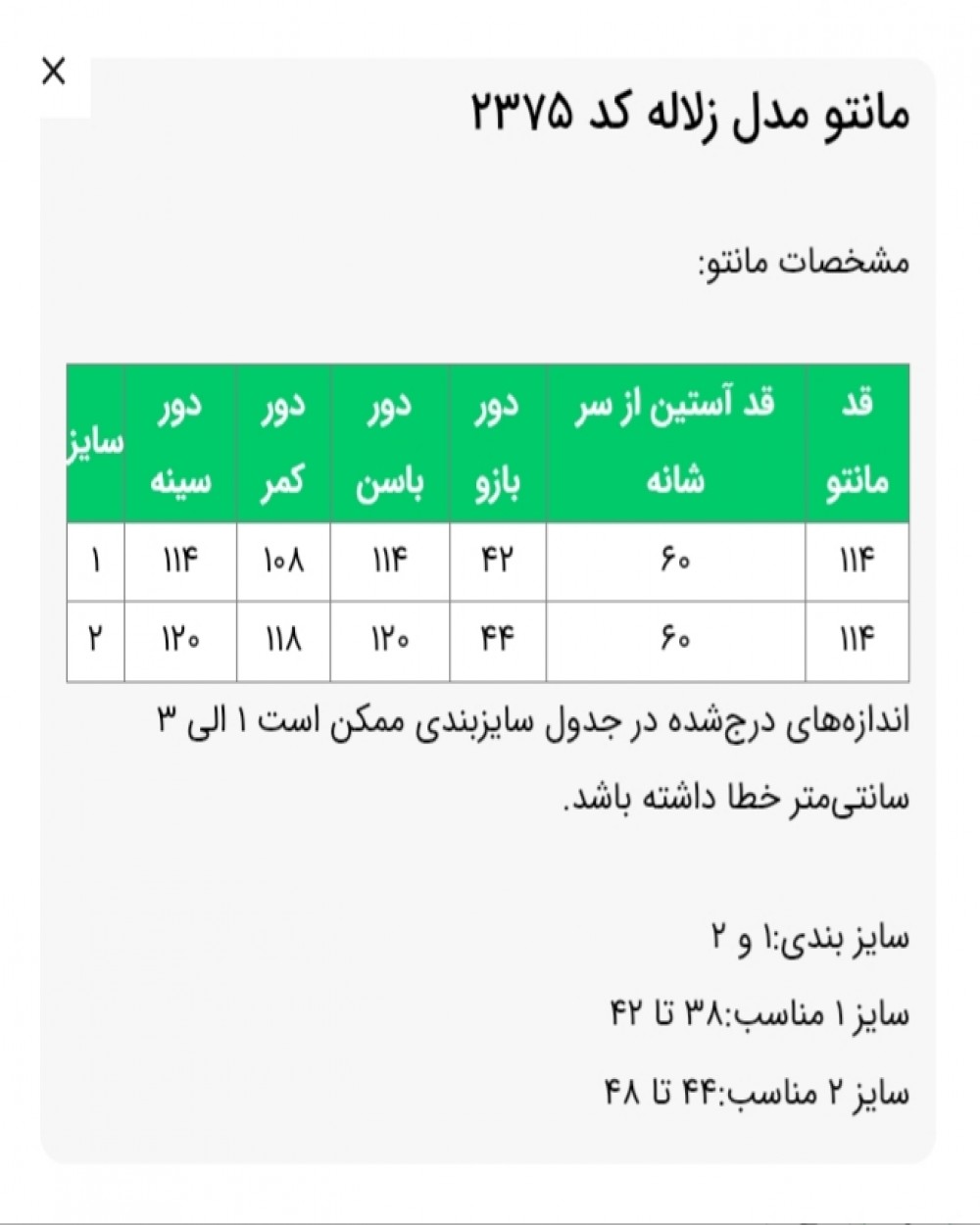 ✅️سایزبندی: 1 و 2