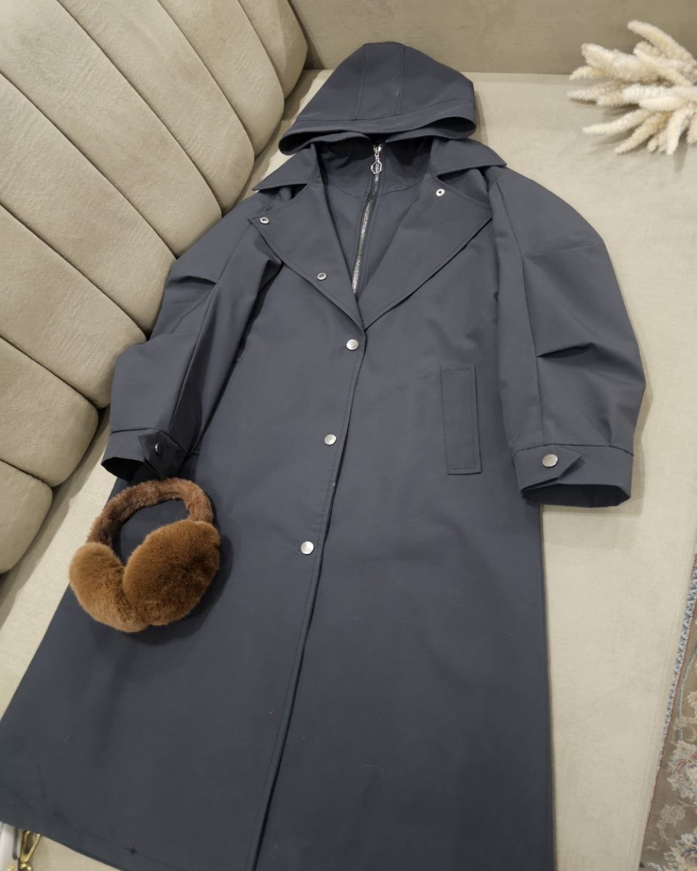 بارانی کتان کلاهدار زنانه مدل آدرینا کد 2111 (ضمانت اصالت)