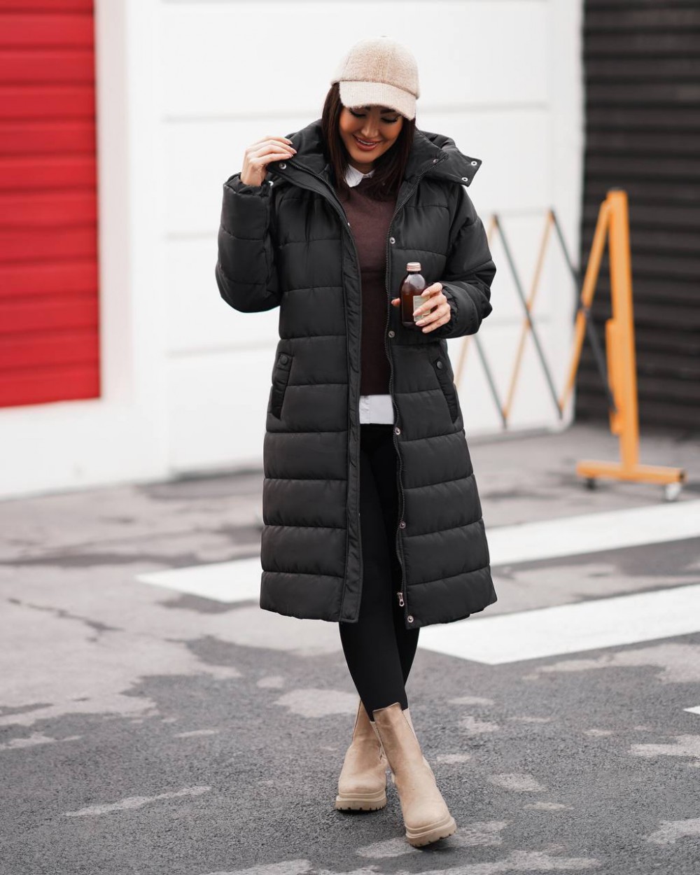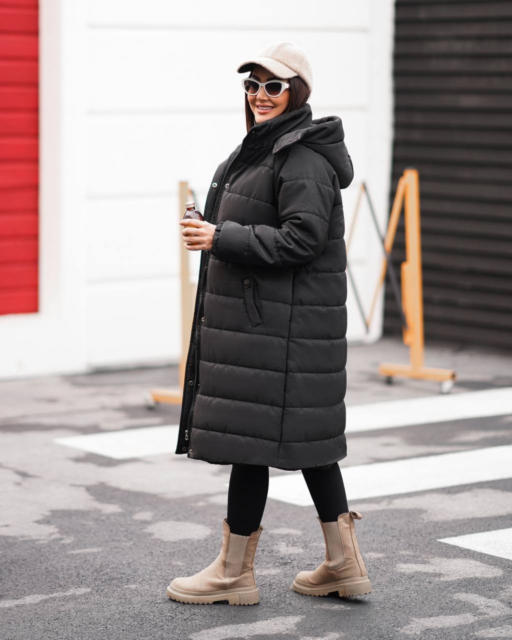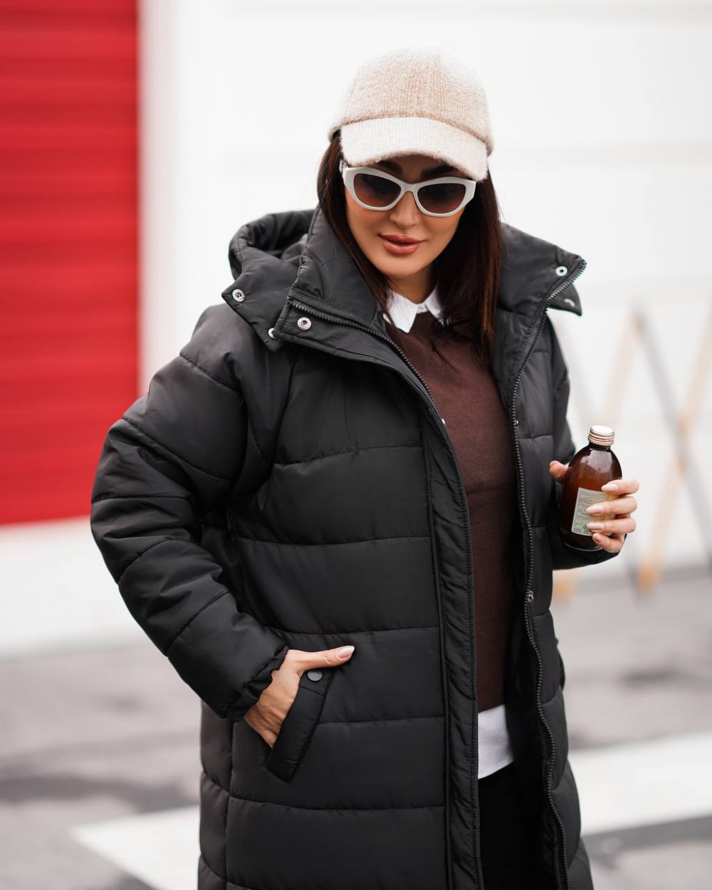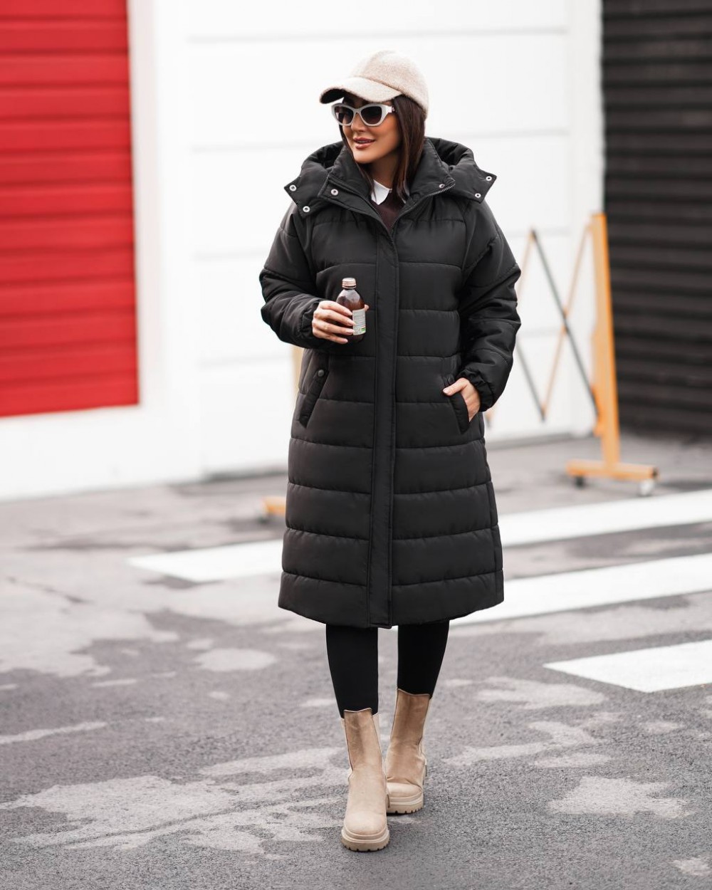 کاپشن کلاهدار بلند امبوردی زنانه مدل آتریسا کد 166 (ضمانت اصالت)