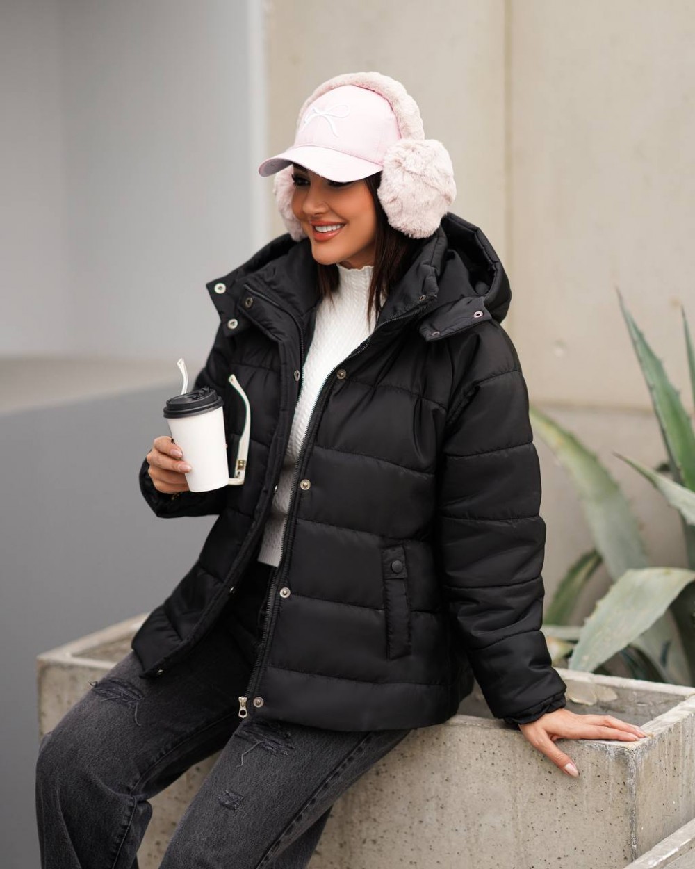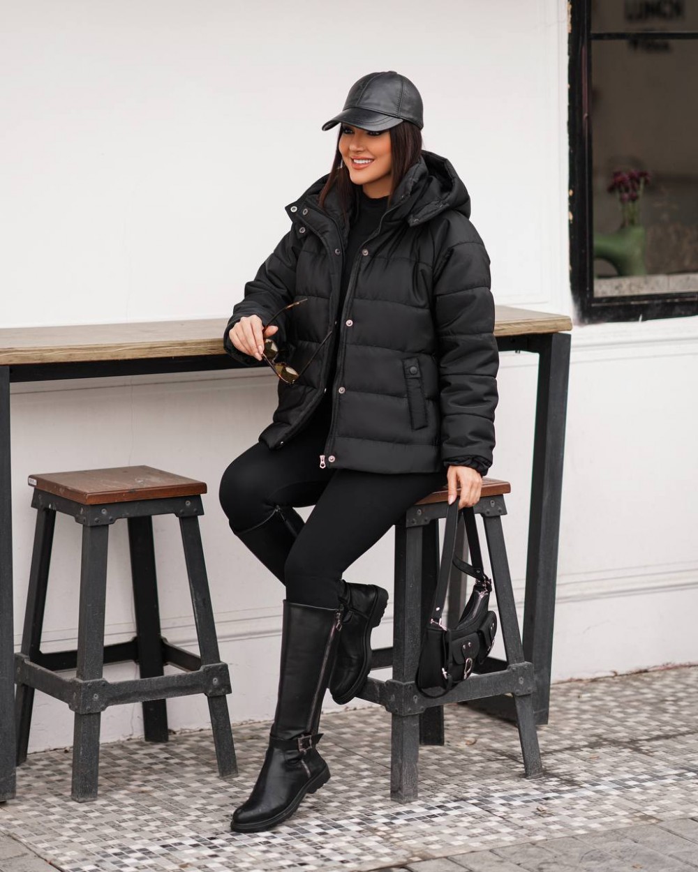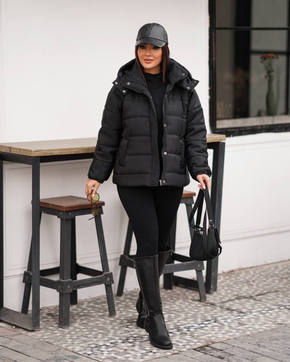 ✅کاپشن کلاهدار کوتاه امبوردی مدل آیتن