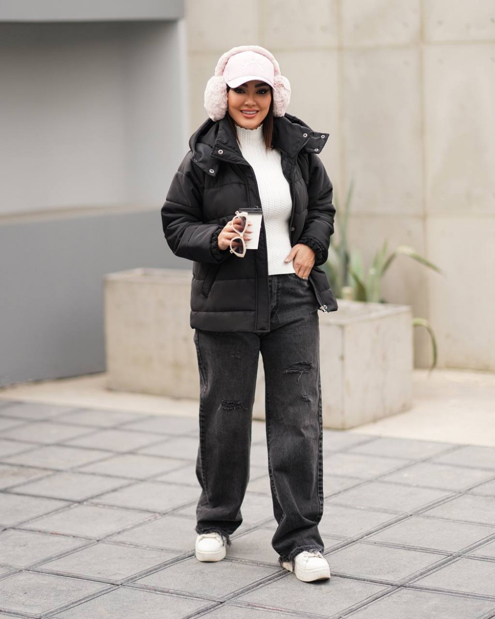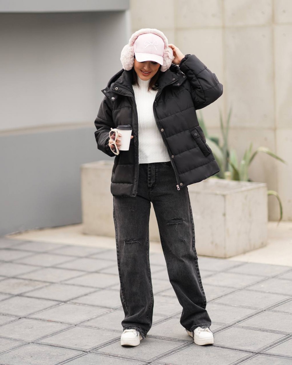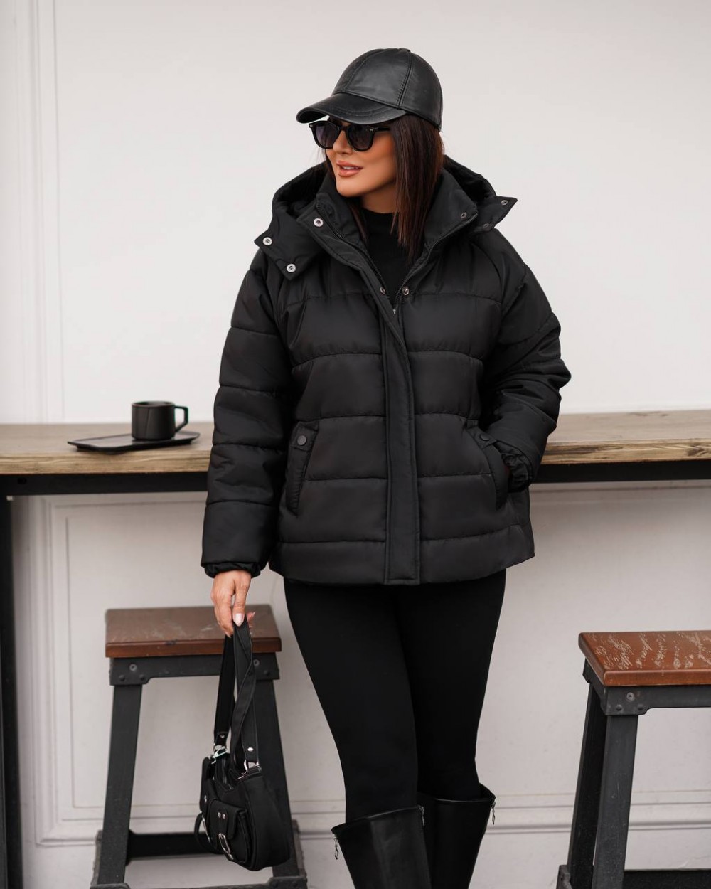 ✅کاپشن کلاهدار کوتاه امبوردی مدل آیتن