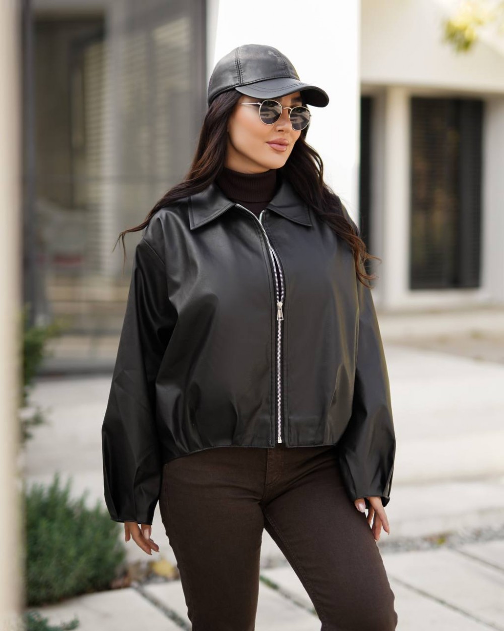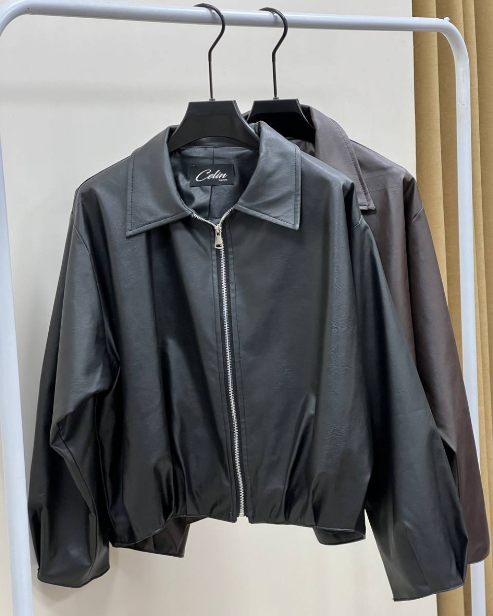 کاپشن چرم زنانه مدل کراپ زیپ کج کد 881 (ضمانت اصالت)