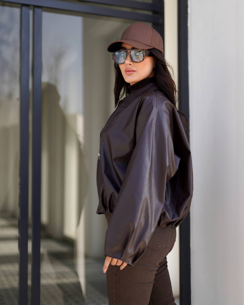 بامبر چرم زنانه مدل آستین پفی کد 6040 (ضمانت اصالت)