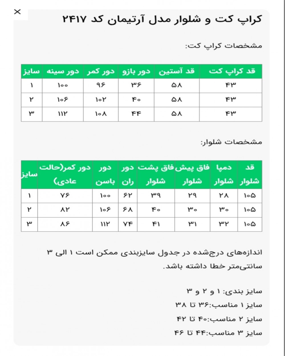 ✅️سایزبندی: 1 و 2 و 3