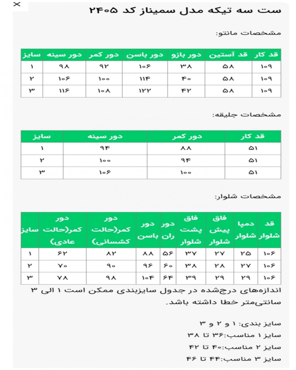 ✅سایزبندی: 1 و 2 و 3
