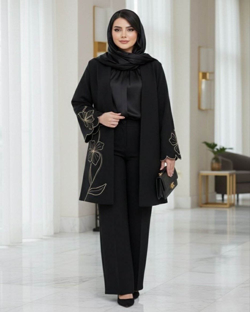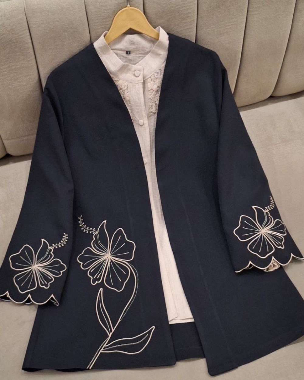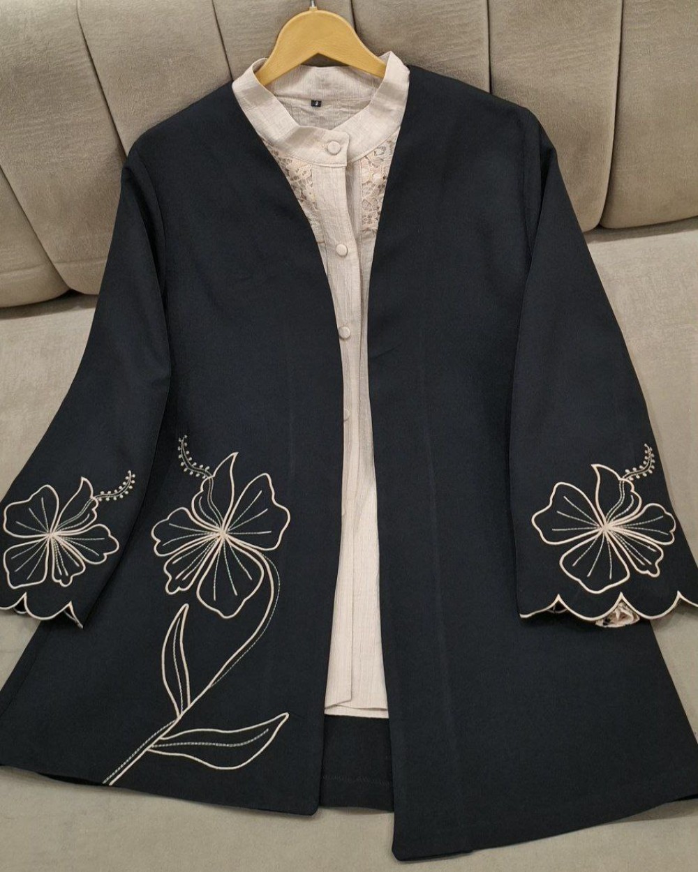 ✅مانتویی خوشدوخت با گلدوزی ظریف روی کار