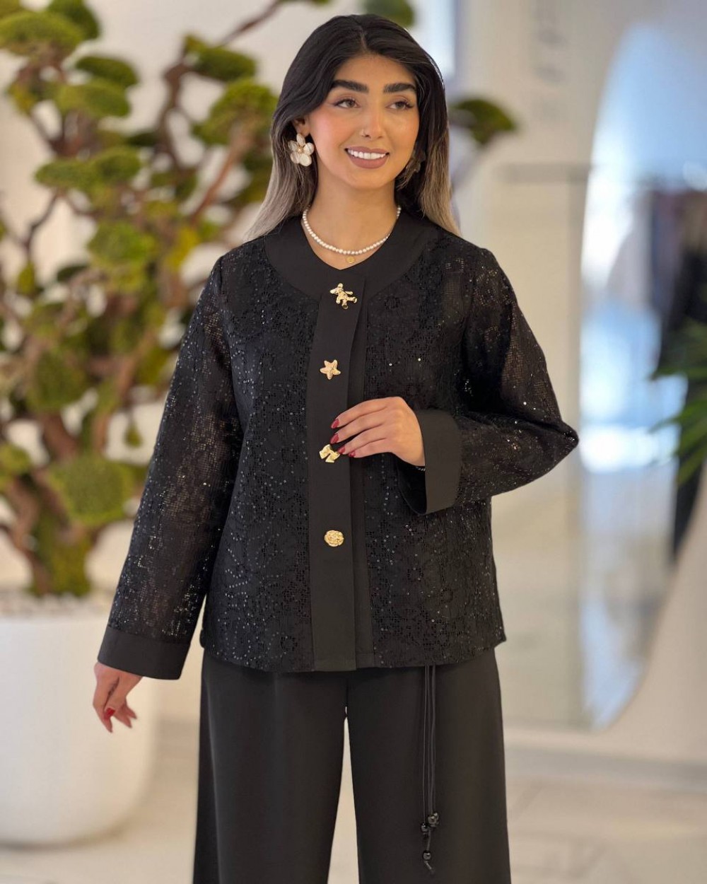 مانتو زنانه پولك دوزي يراق طلايي مدل سارينا کد 1954(ضمانت اصالت)