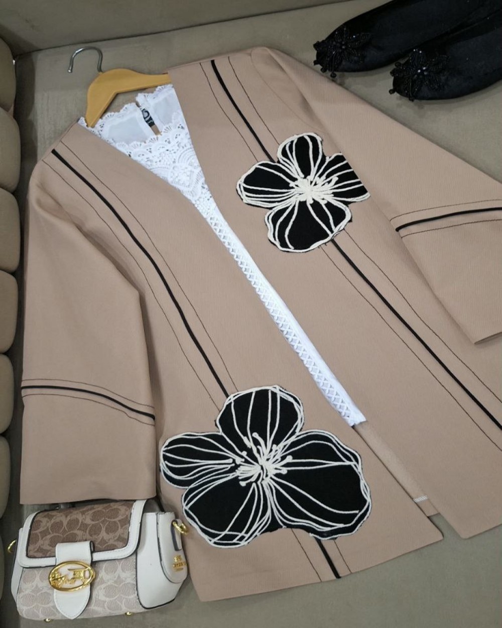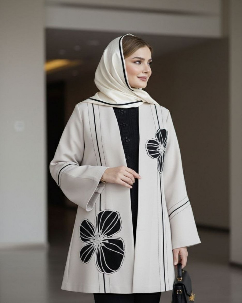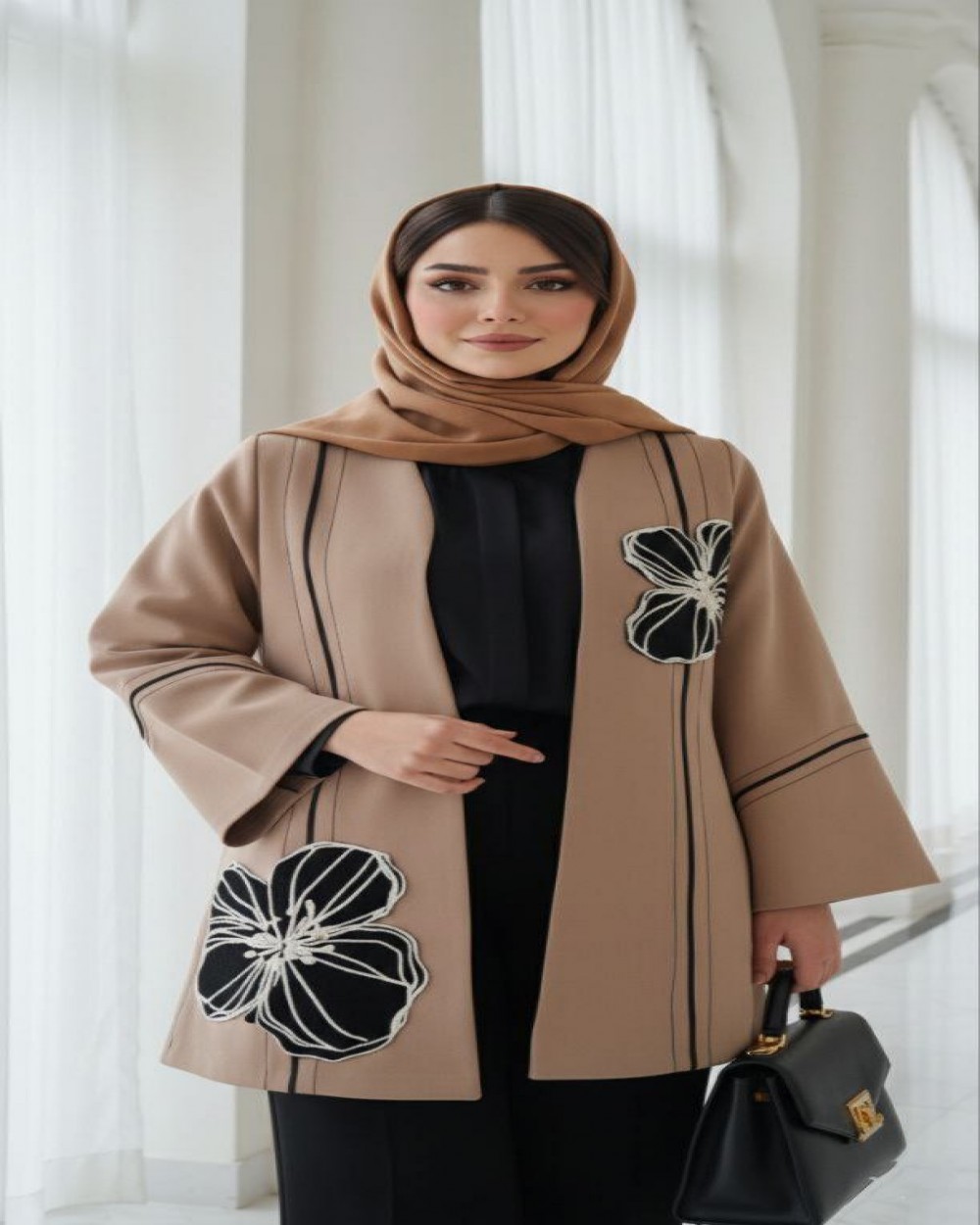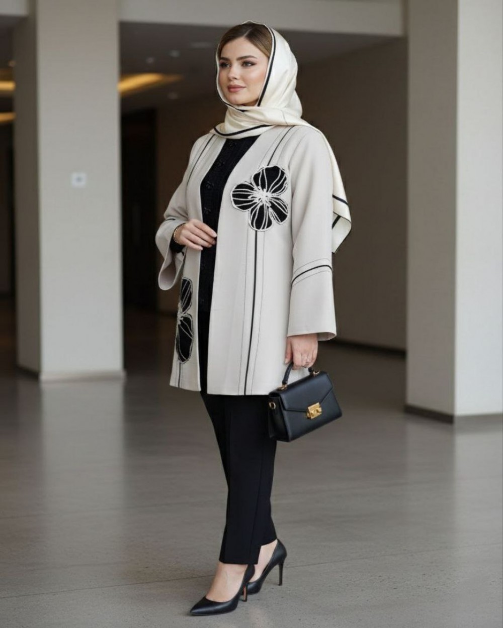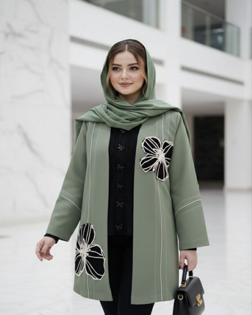 ✅مانتویی خوش‌دوخت با تیکه دوزی ظریف روی کار