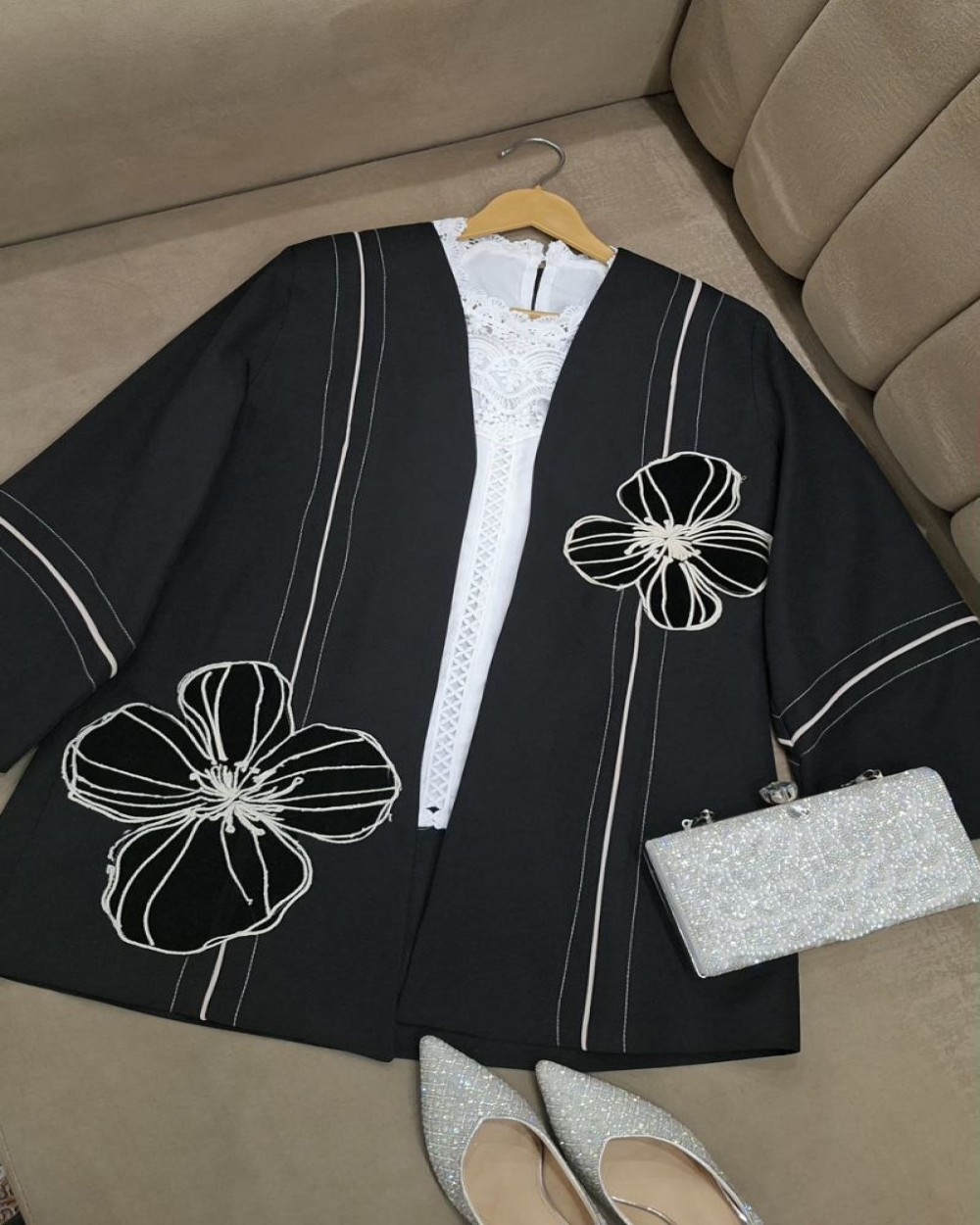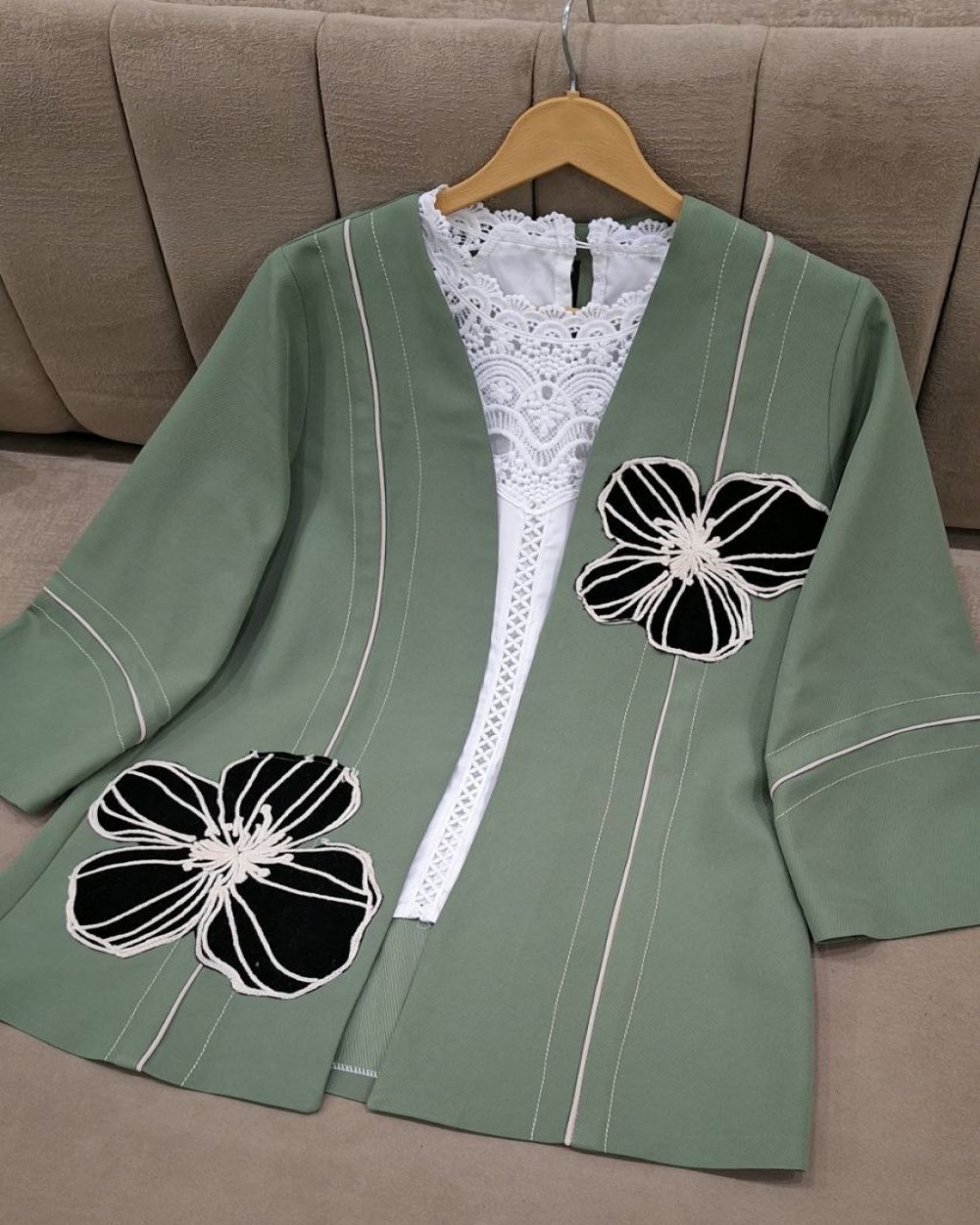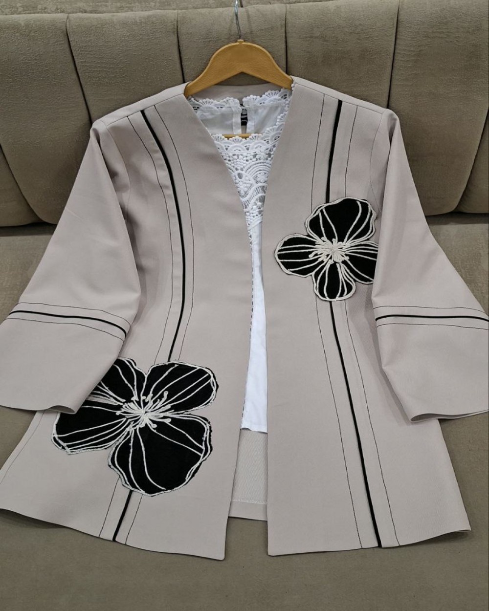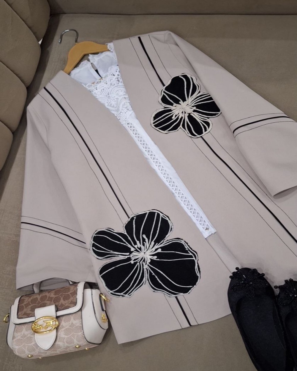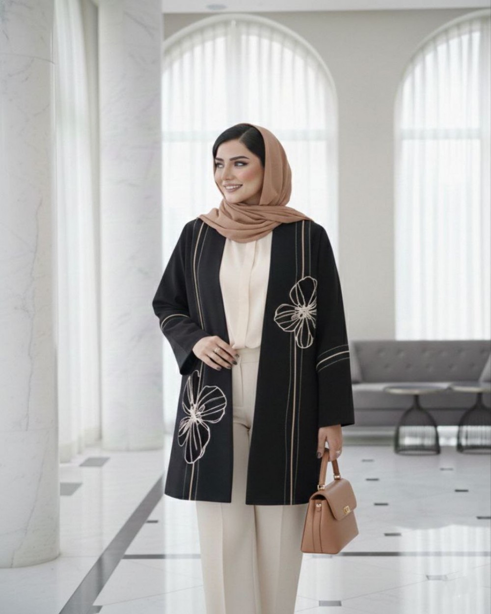 ✅مانتویی خوش‌دوخت با تیکه دوزی ظریف روی کار