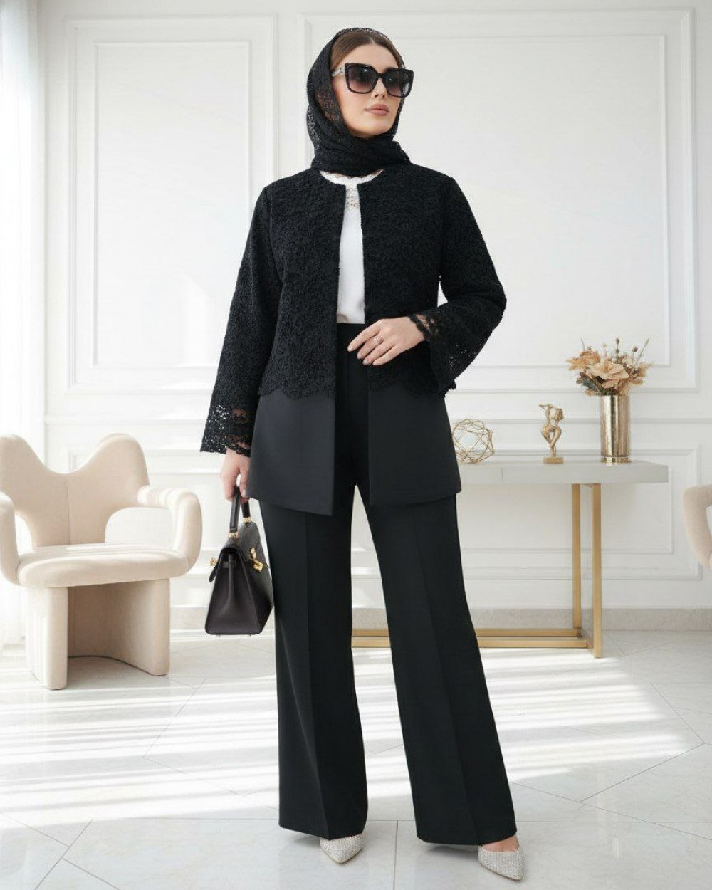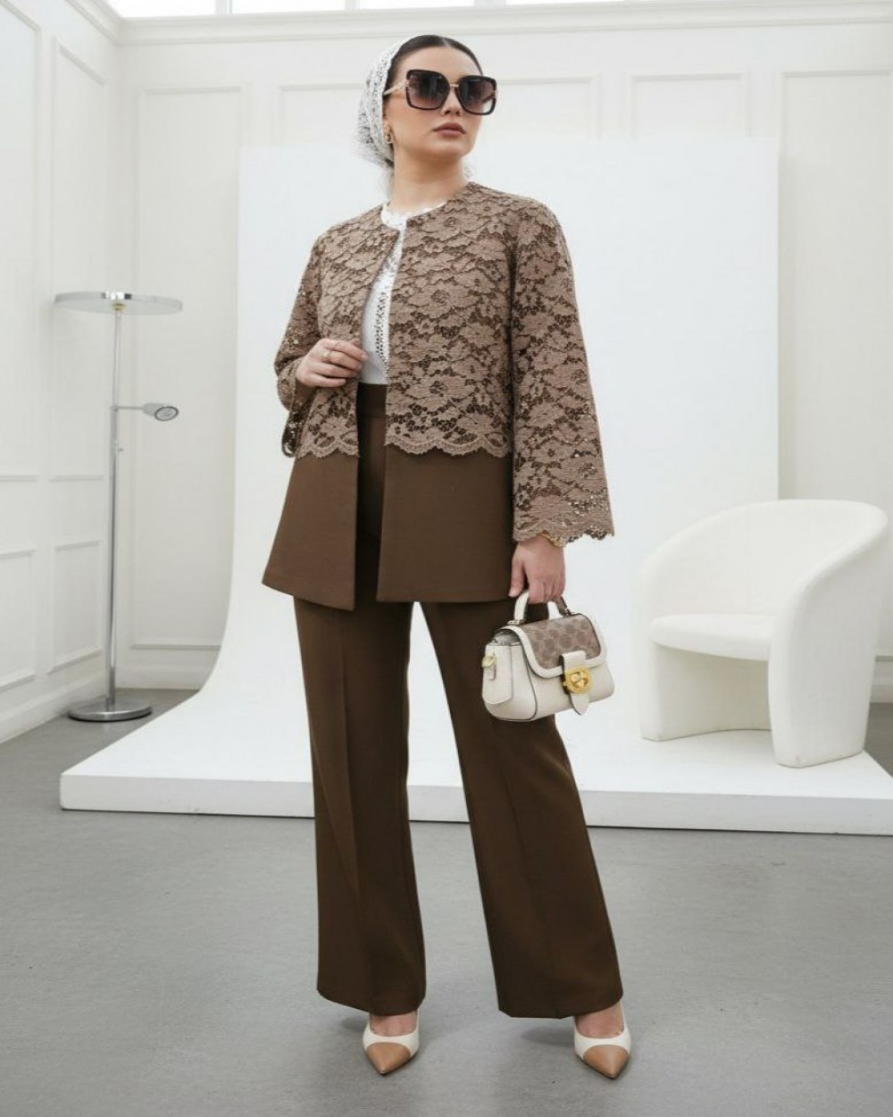 ست کت و شلوار زنانه خرجکار گیپور مدل فروغ کد 1010 (ضمانت اصالت)