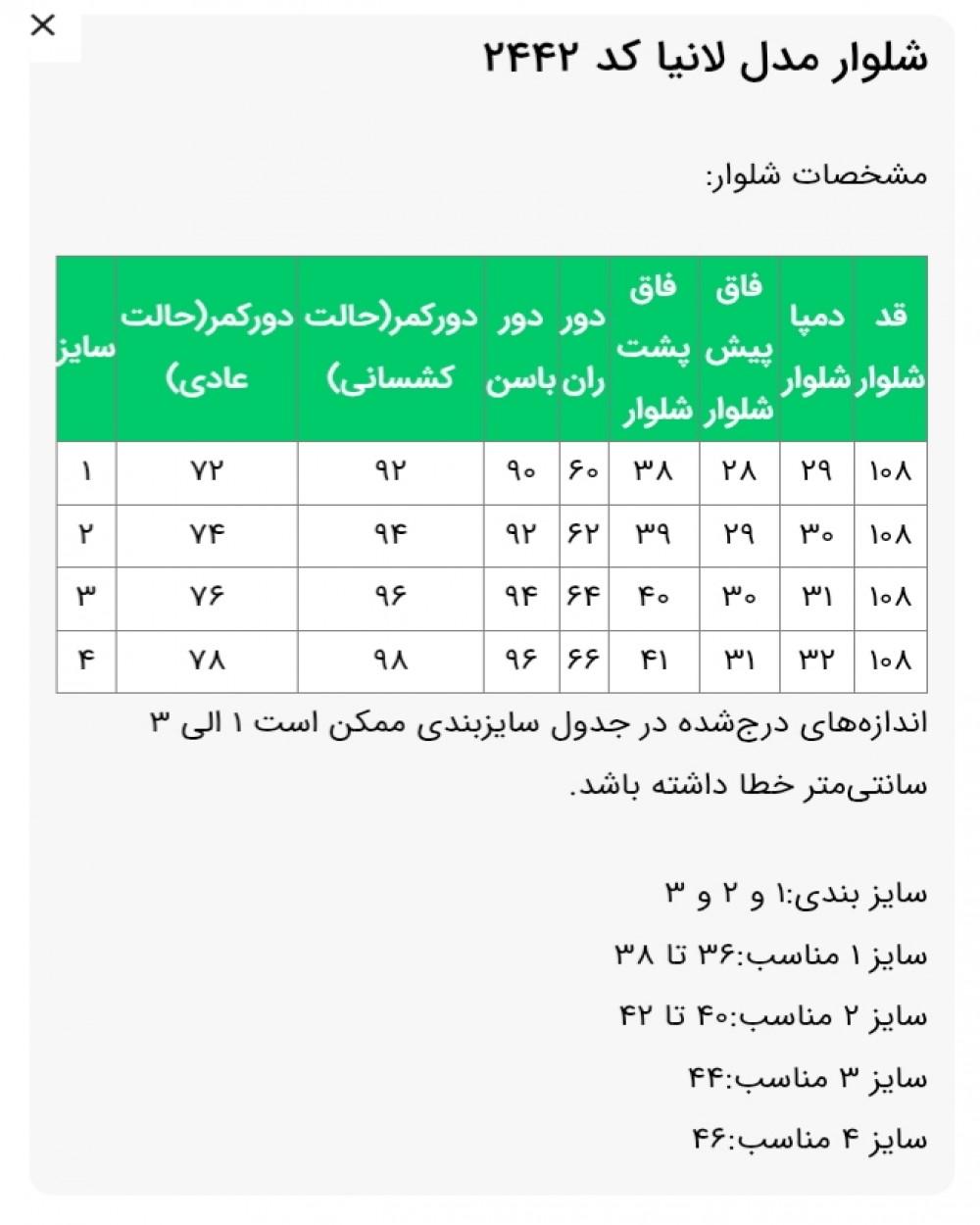✅️سایز 4 مناسب: 46