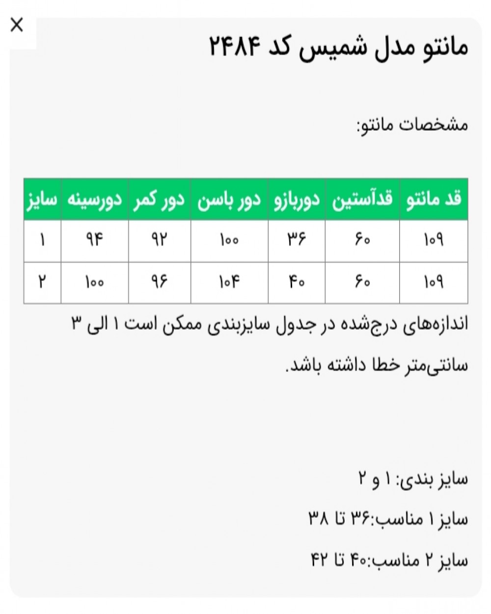 ✅️سایز 2 مناسب: 40 تا 42
