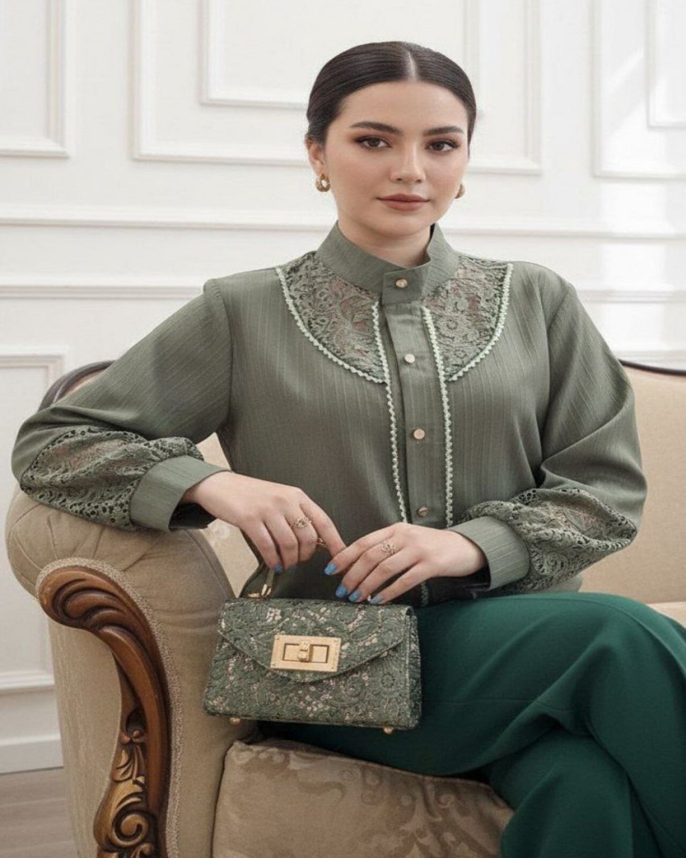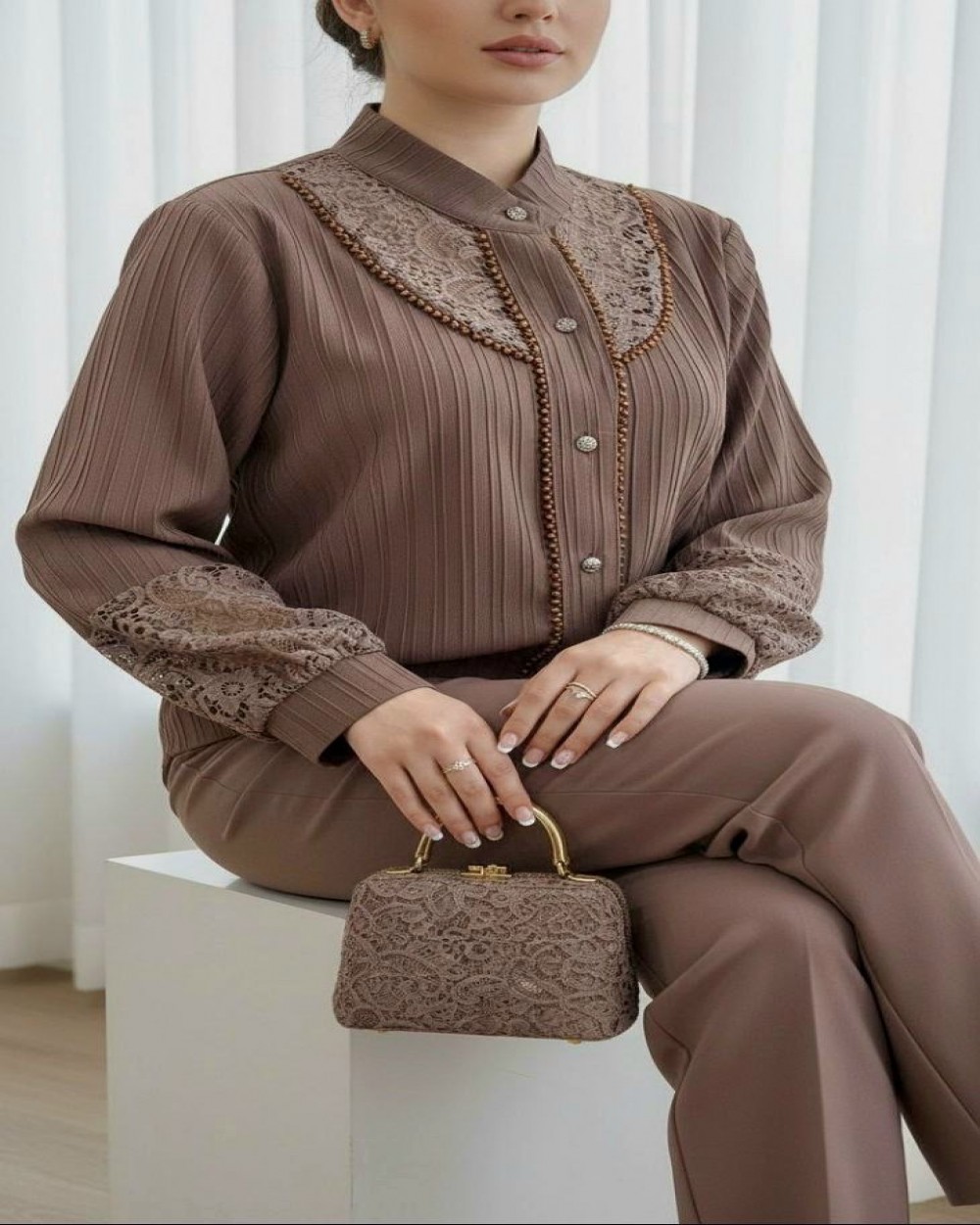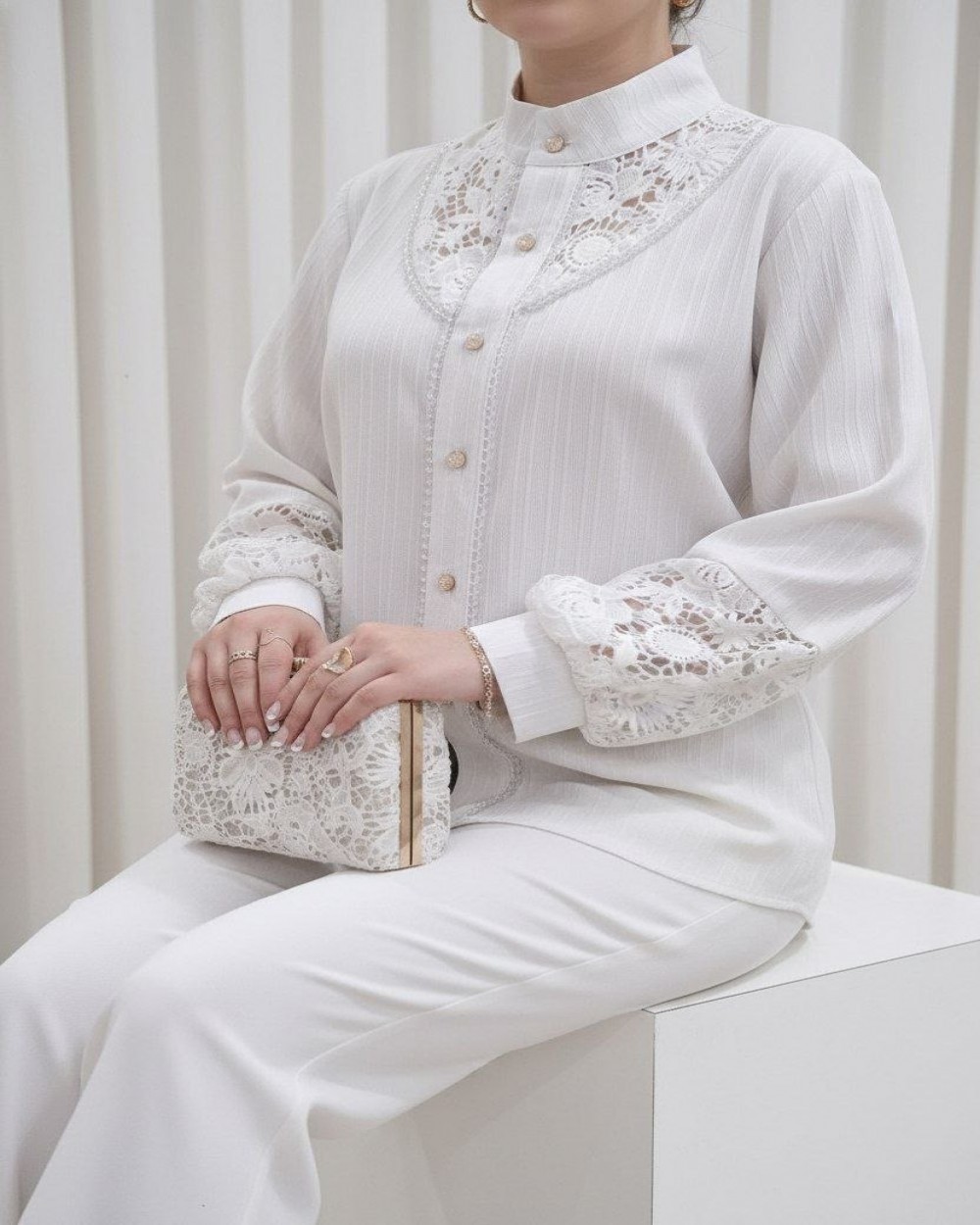 ✅جنس پارچه آیوا ،خرجکار گیپور و کریستال درجه یک ' مناسب تمام فصل ها * کیفیت پارچه ،دوخت و تنخور عالی
